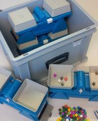 Chacune est complétée avec une vingtaine de cubes de 1 gramme qui peuvent être rangés dans un compartiment intégré. Elles sont prêtées individuellement ou par lot de 4.